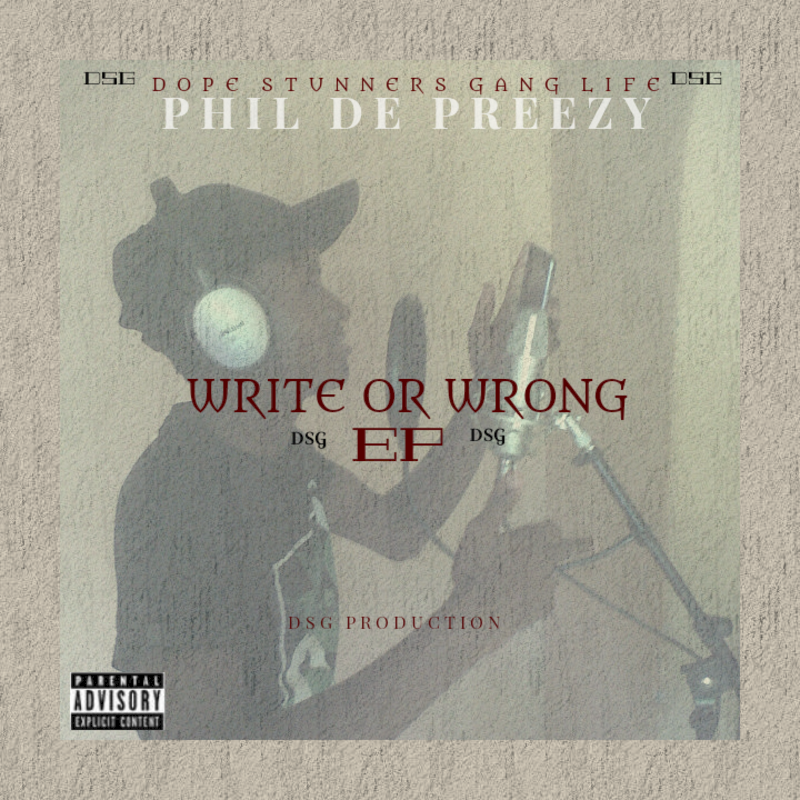 Write Or Wrong is an Extended Playlist (EP) by recording artist Phil de Preezy. The DSG Life act Phil de Preezy recorded and produced Write Or Wrong at DSG Production. It was released by DSG Life on the 16th of December 2016.